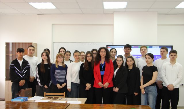 Энергетики познакомили учеников девятого класса со спецификой работы в электроэнергетике. Встреча прошла в формате живого диалога: специалист по охране труда Урванских районных электрических сетей филиала «Каббалкэнерго» Залина Битуева рассказала ребятам об основных направлениях деятельности энергокомпании, целях и задачах, социальной и кадровой политике, а также ответила на вопросы учащихся.