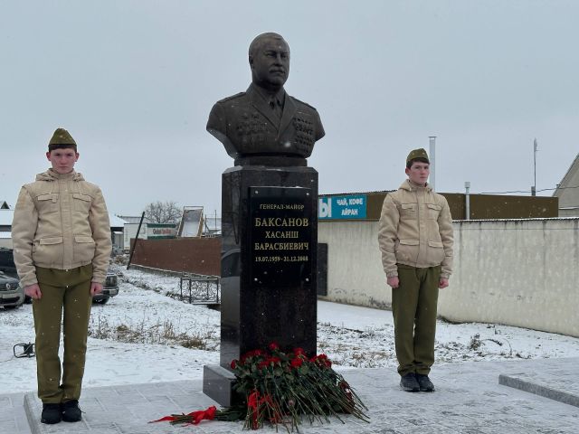 В селении Дыгулыбгей городского округа Баксан состоялось торжественное открытие памятника выдающемуся земляку, генерал-майору Вооруженных Сил России Хасаншу Барасбиевичу Баксанову.