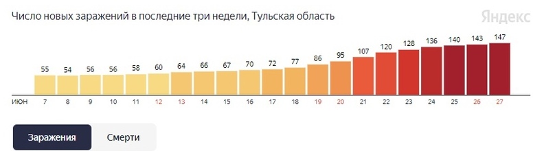Общее число жертв болезни в регионе достигло 2 196 человека. С начала пандемии в Тульской области заболели 42 308 человек. 39 121 вылечились.