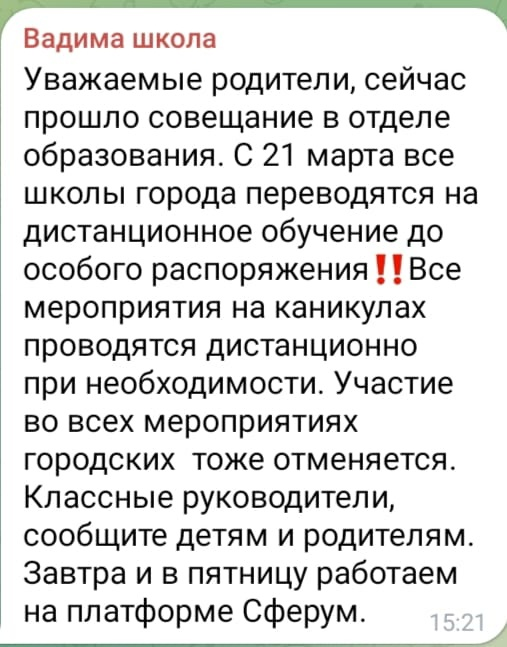 С 21 марта, за два дня до весенних каникул, для учащихся школ образовательный процесс будет изменен. Для воспитанников детских садов ограничения не вводятся.
