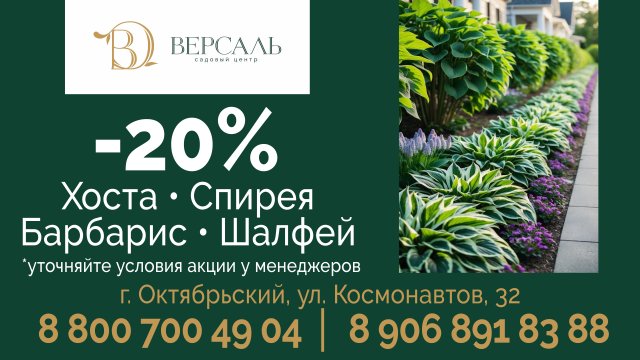 «Версаль» – садовый центр в г. Уфе. У нас самый большой ассортимент растений в РБ, поэтому мы быстро реализовываем даже самые сложные ландшафтные проекты.