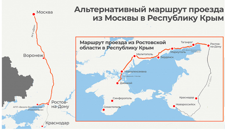 Государственная компания «Российские автомобильные дороги» («Автодор») опубликовала схему проезда из Ростова в Крым по новым территориям.