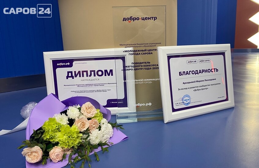 Саровский Добро.Центр выиграл в специальной номинации «Атомный город». Его руководитель Марина Аркадьева награждена благодарственным письмом за вклад в развитие сообщества программы «Добро.Центр».
