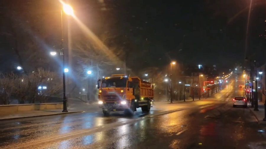 Около двух часов ночи в городе пошёл дождь со снегом — к шести утра выпало порядка 1,5 мм осадков. Бригады «СГТ» начали обработку городских дорог противогололедными реагентами — на улицы города вышло 97 единиц спецтехники. К семи утра дорожники «СГТ» обработали ключевые проезды города, сложные спуски и подъёмы, объездную трассу Седанка – Патрокл и дороги Русского острова.