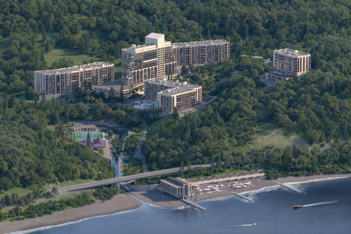 Проект площадью 10 гектар расположен в живописной долине Уч-Дере на первой береговой линии – в месте, известном своим особым исцеляющим микроклиматом. Уникальность расположения нашла отражение и в архитектуре, воплощая принцип биофильного дизайна. Комплекс будет состоять из пяти корпусов категории 4*, каждый – с собственной концепцией, а вместе они формируют единую экосистему для оздоровления и отдыха. В частности, предусмотрены номера с премиальной отделкой и панорамными видами на море и горы, благоустройство лечебного пляжа, уникального дендропарка – он будет не только полностью сохранен, но и интегрирован в новую жизнь проекта.