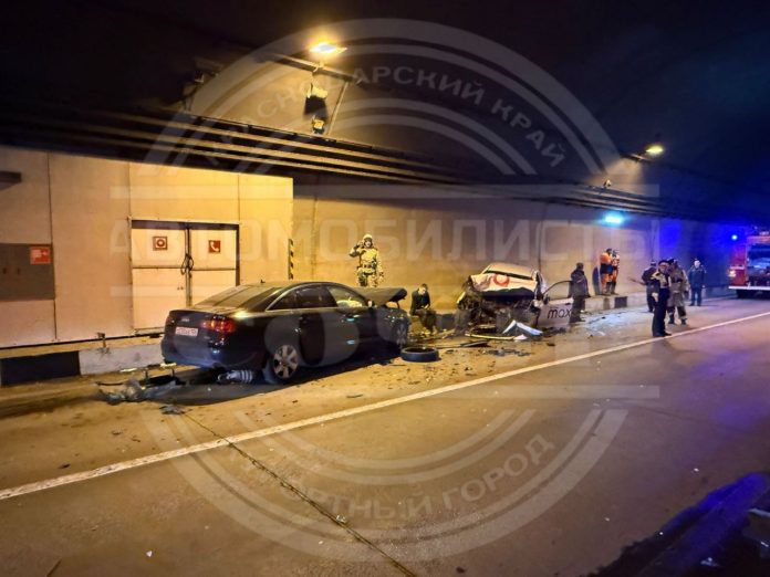 В Сочи сегодня, 23 ноября, произошло серьёзное ДТП. На выезде из первого тоннеля в сторону Адлера на Краснополянской трассе столкнулись легковой автомобиль «Audi» и такси сервиса «Максим».