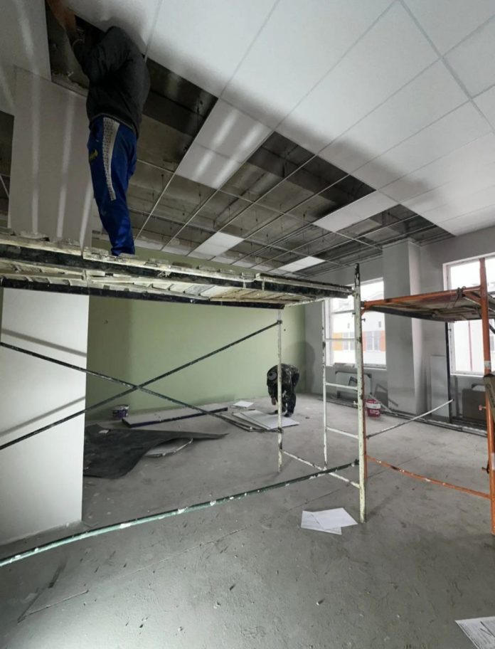 На объекте продолжаются работы по прокладке внутренних инженерных сетей, ведется внутренняя отделка помещений и благоустройство прилегающей территории. В строительстве задействованы 233 специалиста и три единицы техники. По состоянию на текущий момент физическая готовность школы оценивается в 91 процент.