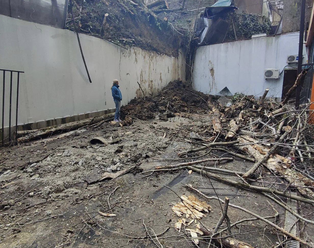 В Адлере за домом по адресу Петрозаводская, 26/5 сошел оползень с соседнего земельного участка в сторону жилого многоквартирного дома.