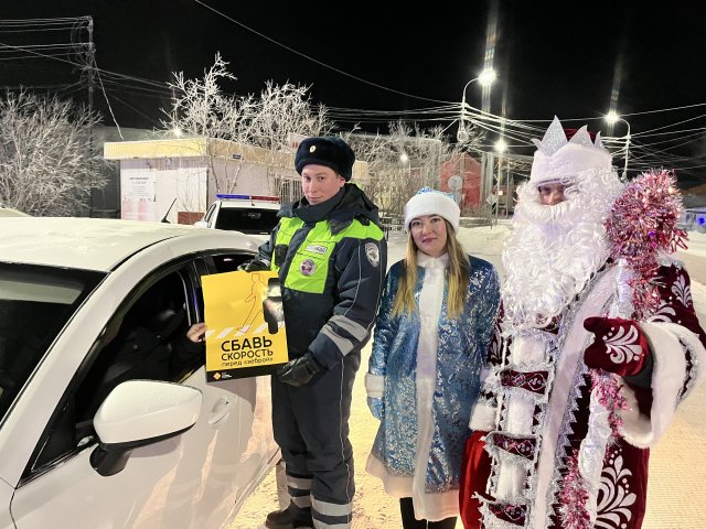 Автоинспекторы в лице Деда Мороза в свою очередь напомнили водителям о необходимости снижать скорость перед приближением пешеходным переходам, обязательно пристегиваться ремнём безопасности, а также напомнили о недопустимости управления транспортными средствами в состоянии опьянения. Водителям Снегурочка и Дед Мороз вручили витаминки-апельсинки, пожелали не болеть в Новом Году, а также соблюдать ПДД.