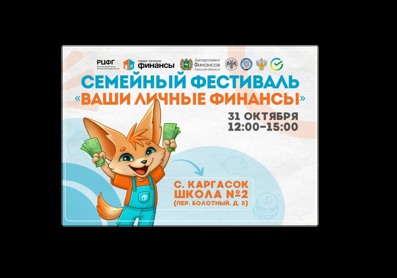 В пятницу, 31 октября, с 12.00 до 15.00 в селе Каргасок на площадке школы № 2 (пер. Болотный, 5) пройдет Межмуниципальный семейный фестиваль «Ваши личные финансы».