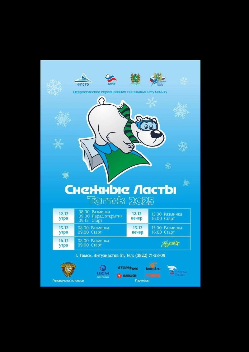 Всероссийские соревнования по подводному спорту «Снежные ласты» пройдут в Центре водных видов спорта «Звездный» (ул. Энтузиастов, 31) с 12 по 14 декабря.