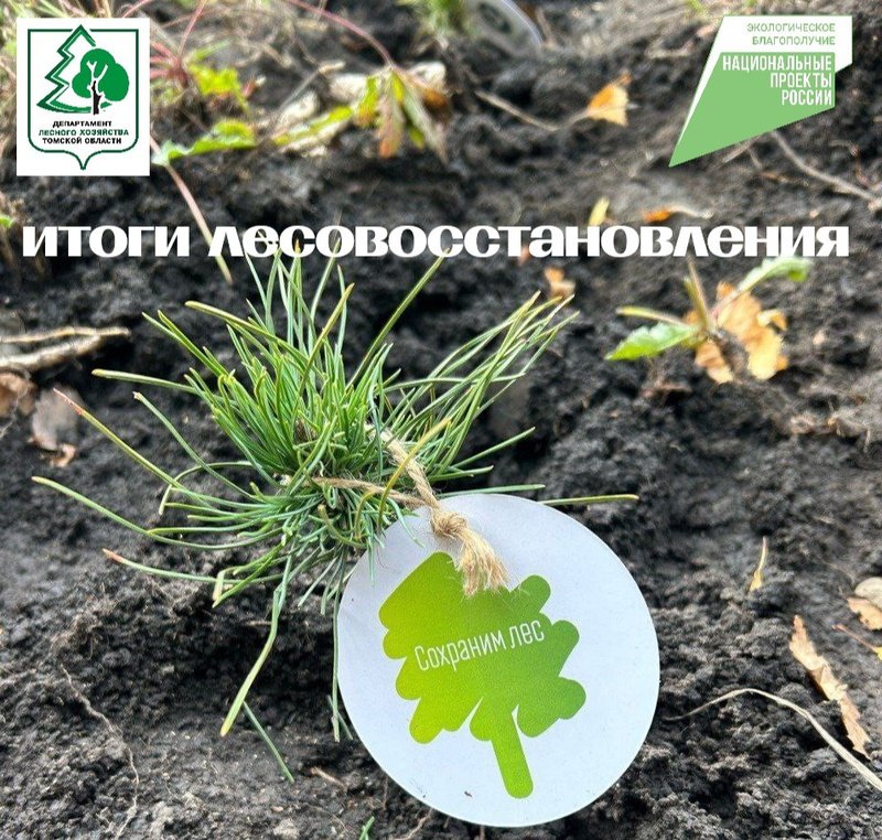По проекту «Сохранение лесов» президентского нацпроекта «Экология» в 2024 году лесовосстановление в Томской области было выполнено на площади 49774,15 га или 116,4% от плана (план 42744,83 га); в 2023 году — на площади 47378,83 га или 121,5% (план 39004 га), в 2022 году — на площади 41238,65 га или 112,6% (план 36614,75 га).