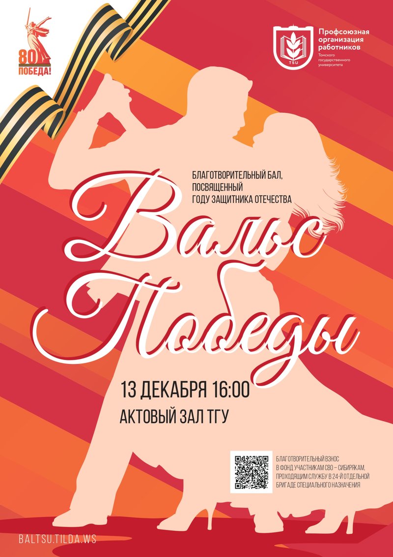 В субботу, 13 декабря, в 16.00 в актовом зале главного корпуса Томского государственного университета состоится благотворительный бал, посвященный Году защитника Отечества.