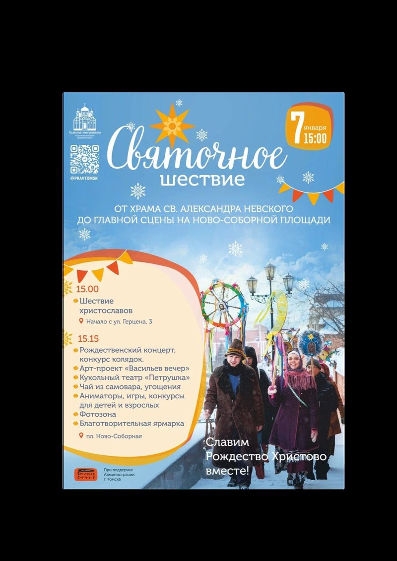 Сегодня, в праздник Рождества Христова, в Томске состоятся Святочное шествие и рождественский концерт на Ново-Соборной площади.