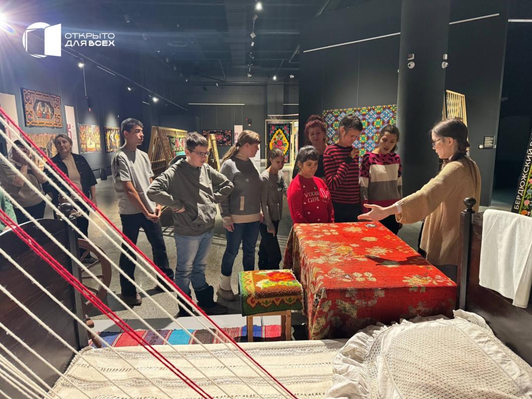 Другая группа отправилась на выставку "Сибирский махровый ковер" в музейном комплексе им. Словцова. Дети увидели ковры из фондов, узнали о традициях их изготовления и попробовали создать собственный элемент на мастер-классе.