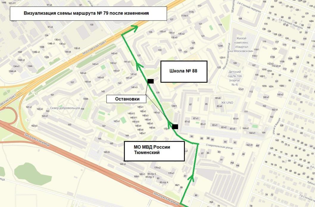 Однако в связи тем, что существующие улично-дорожные условия для организации работы автобусов большого класса стесненные, схема его движения будет незначительно изменена. При этом сохранится его пешеходная доступность для жителей района МО МВД России "Тюменский" - 500 метров.