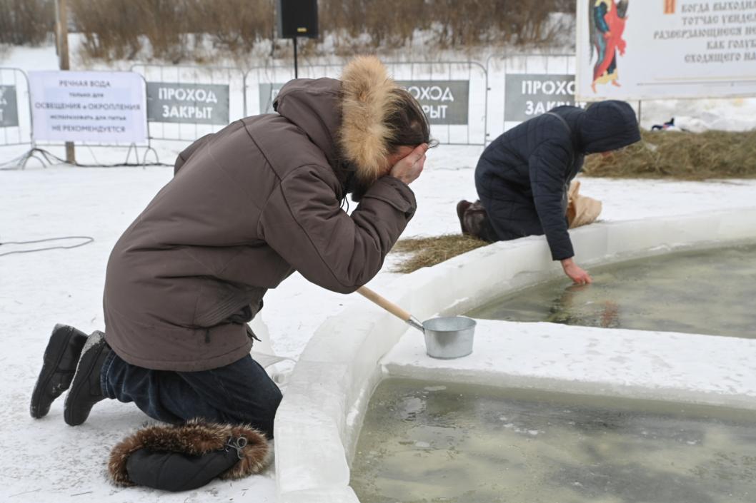 Сейчас река промерзла на 40 см. К 19 января в дополнение к купели здесь установят палатки для переодевания.