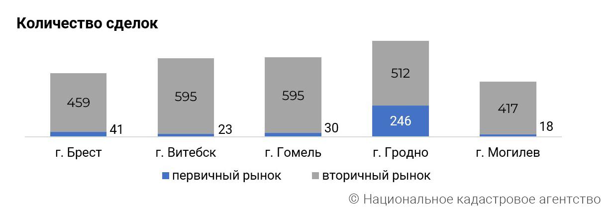 По итогам третьего квартала нынешнего года в областных центрах совершено 2,9 тысяч сделок с недвижимостью. Это сопоставимо с предыдущим кварталом 2025 г. Из областных центров больше всего квартир приобрели в Гродно (758 сделок), меньше, чем в других городах – в Могилеве (435 сделок), а в Витебске - 618.