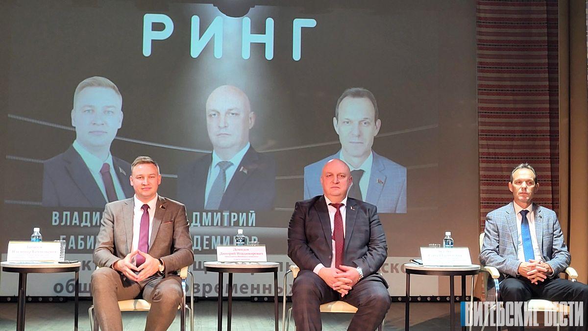 Роль общественных объединений и политических партий в современных условиях обсуждают в ходе диалоговой площадки в рамках информационно-аналитического проекта «РИНГ» (Реальность. История. Народ. Государство) в Толочине. В роли экспертов – председатель Витебского областного Совета депутатов, председатель Витебской областной организации РОО «Белая Русь» Дмитрий Демидов, депутат Палаты представителей Национального собрания Республики Беларусь, председатель Витебской областной организации РОО «Патриоты Беларуси» Владимир Бабичев, заместитель председателя областного отделения Белорусской партии «Белая Русь» Сергей Ляденко.