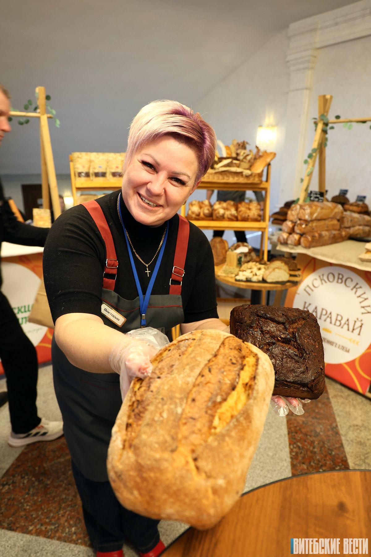 Представительница ООО «Псковский каравай» Виктория Гаврилова впервые принимает участие в фестивале. Она рассказала, что представленная хлебная продукция производится вручную. Хлеб с сыром, луком, морковью и другими добавками выпекают в печи на камнях, как это делали бабушки в деревнях.