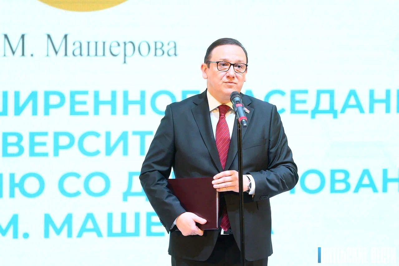 В торжественном заседании совета университета, посвященном юбилею ВГУ им. П. Машерова, принял участие первый заместитель главы администрации Президента Владимир Перцов.
