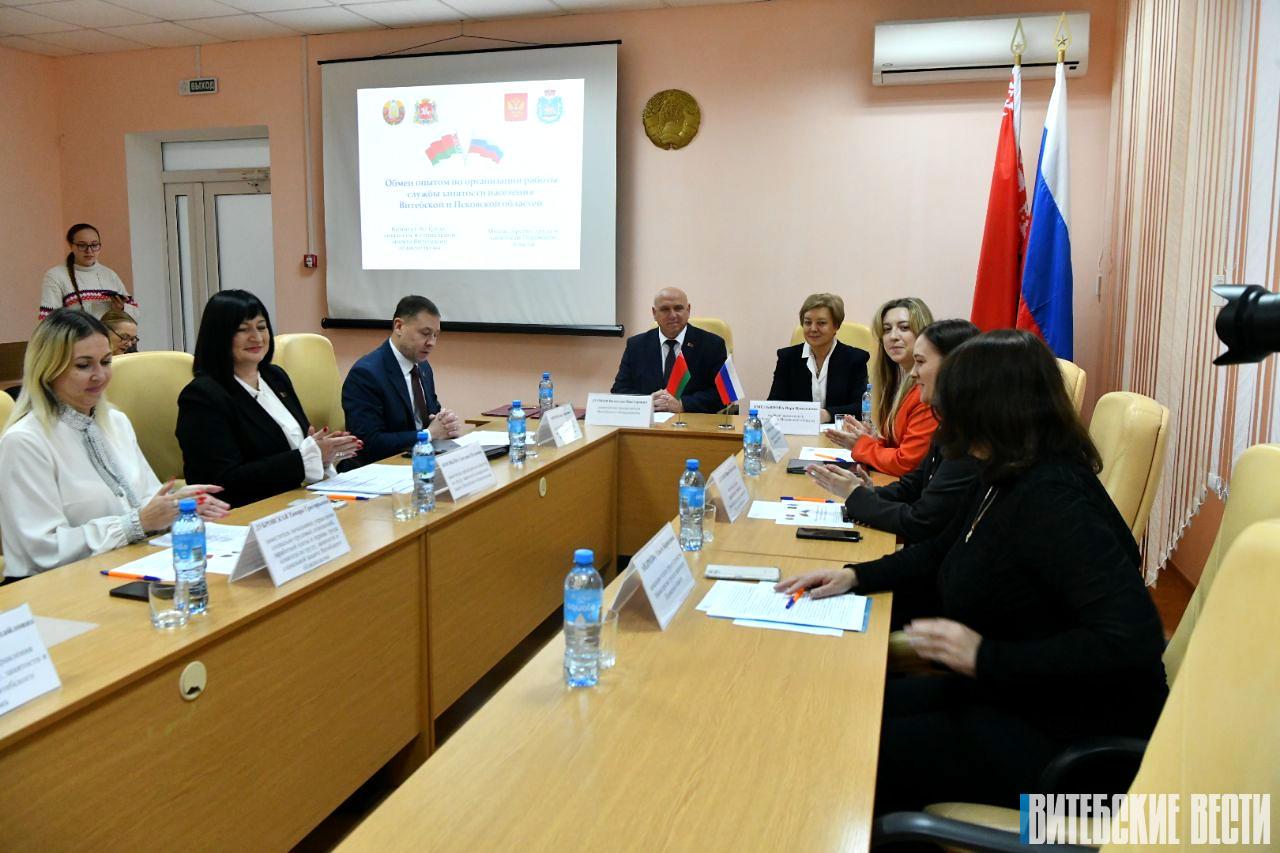 В рамках дней Псковской области в Витебске состоялся круглый стол по обмену опытом в сфере государственной политики занятости населения. Участниками мероприятия стали представители комитета по труду, занятости и социальной защиты Витебского облисполкома и Министерства по труду и занятости Псковской области.