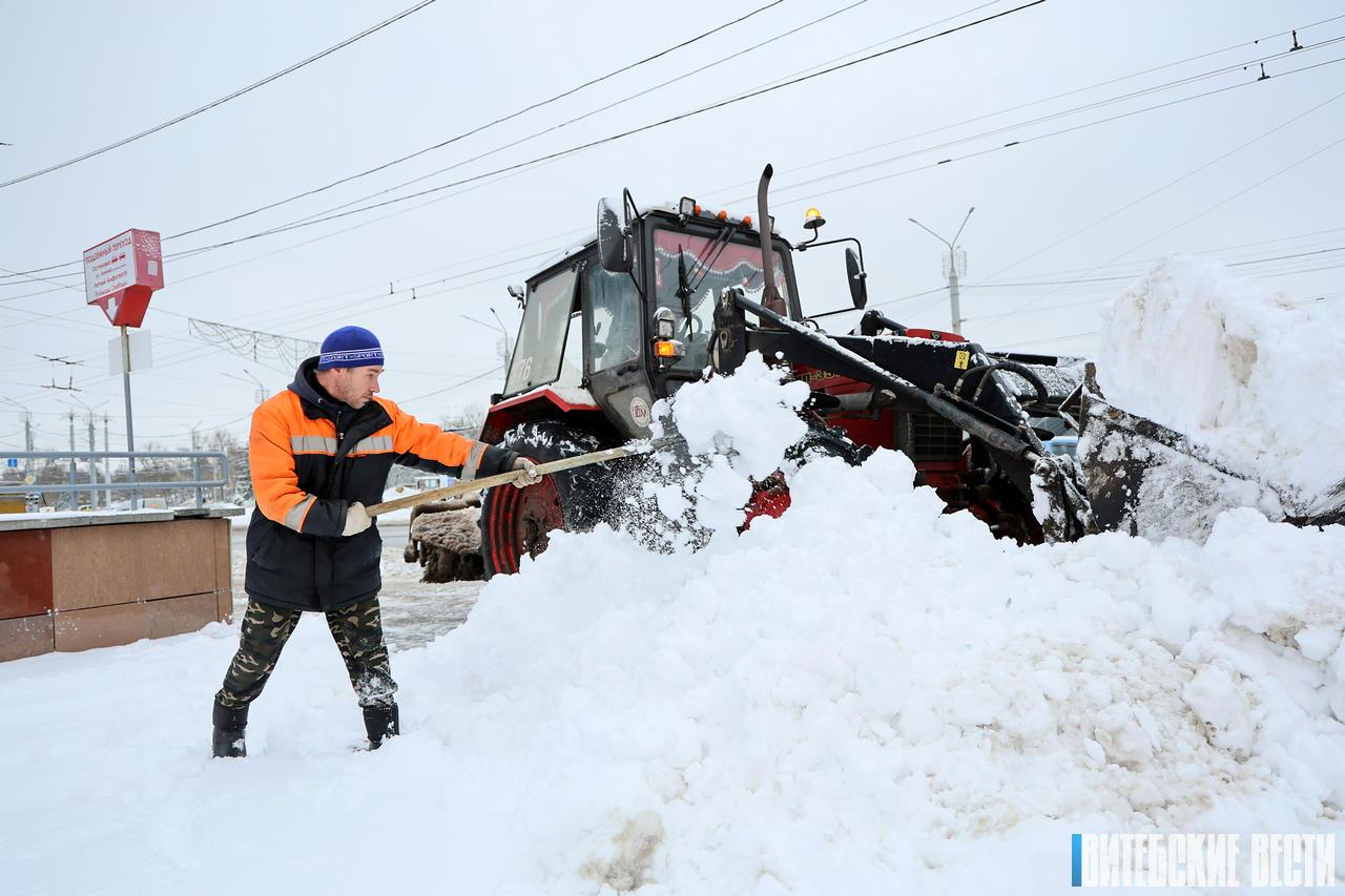 Коммунальные службы продолжают расчищать дороги и улицы Витебска после ночного снегопада.