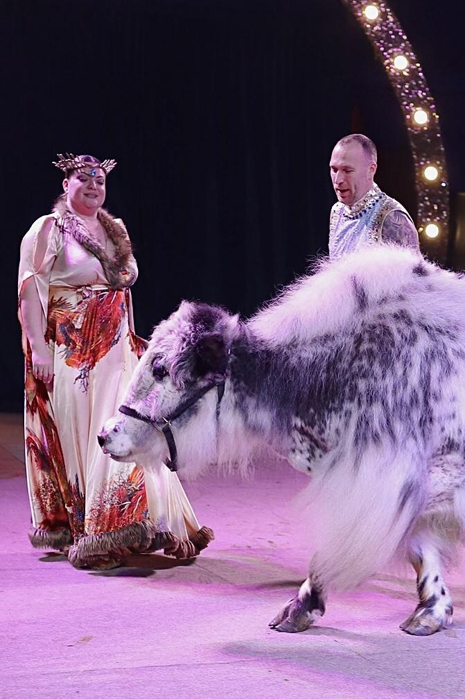 Примечательно, что звездами арены в этом коллективе стал большой отряд пернатых: голуби, гуси, розовый пеликан, страусы и даже голландские курочки. Кроме них, взрослых и детей порадуют своим выступлением кошки, собаки, козочки, мини-пиг, дикобразы, пятнистый олень. А настоящим «гвоздем» программы является аттракцион с дрессированными тибетскими яками.