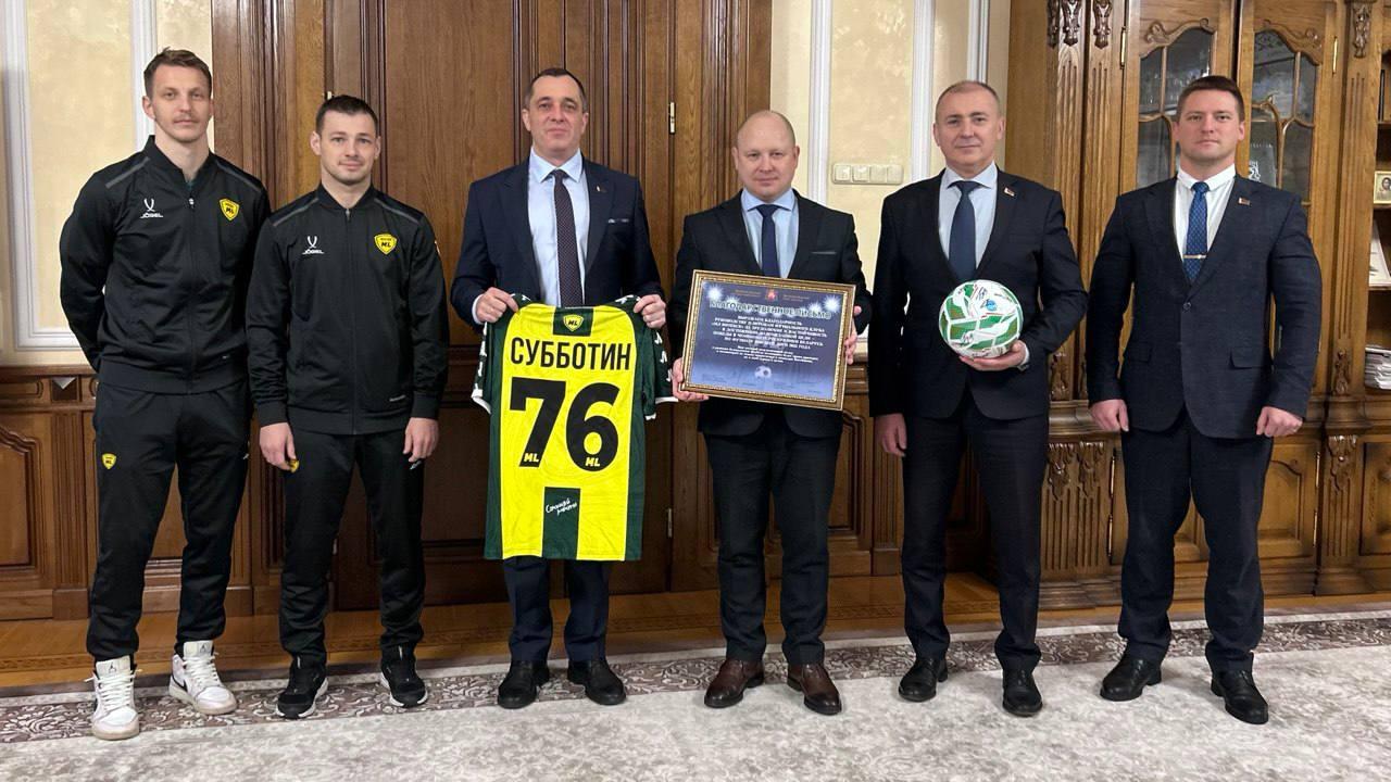 Александр Субботин и Владимир Юргевич встретились с директором футбольного клуба "МЛ Витебск" Виктором Фаустовичем и игроками команды — Денисом Левицким и Владиславом Жуком.