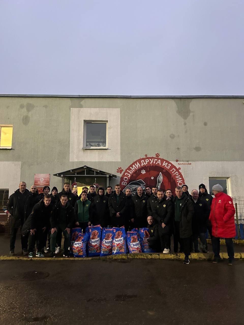 На этой неделе руководство, тренерский штаб и футболисты «МЛ Витебск» вновь посетили с подарками витебский приют для безнадзорных животных «Добрик».