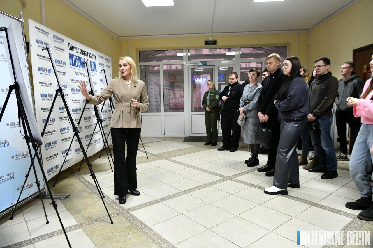 Знакомство с редакцией началось с посещения выставки «Страницы Победы», посвященной 80-летию Великой Победы, творческих площадок Медиалаборатории Витебской области.