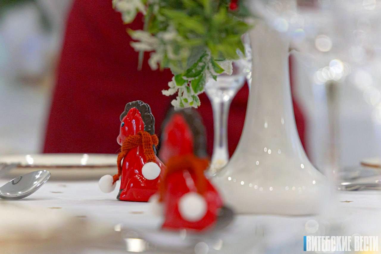 Ирина Василевич подчеркнула, что новогодний стол должен быть выдержанным, оформленным в винных, терракотовых и бордовых тонах, без ярких оттенков. Учащиеся колледжа прекрасно знают, что в оформлении стола следует использовать не более трех цветов. Мы выбрали бордо и белый с золотыми акцентами. Основное внимание уделили новогодней композиции. В этом сезоне тренд – на естественность. Поэтому рекомендуется использовать натуральную хвою, а также обязательно добавить фигурку лошади, которая символизирует движение вперед, удачу и финансовый рост. Свечи при праздничной сервировке создадут атмосферу уюта и волшебства.