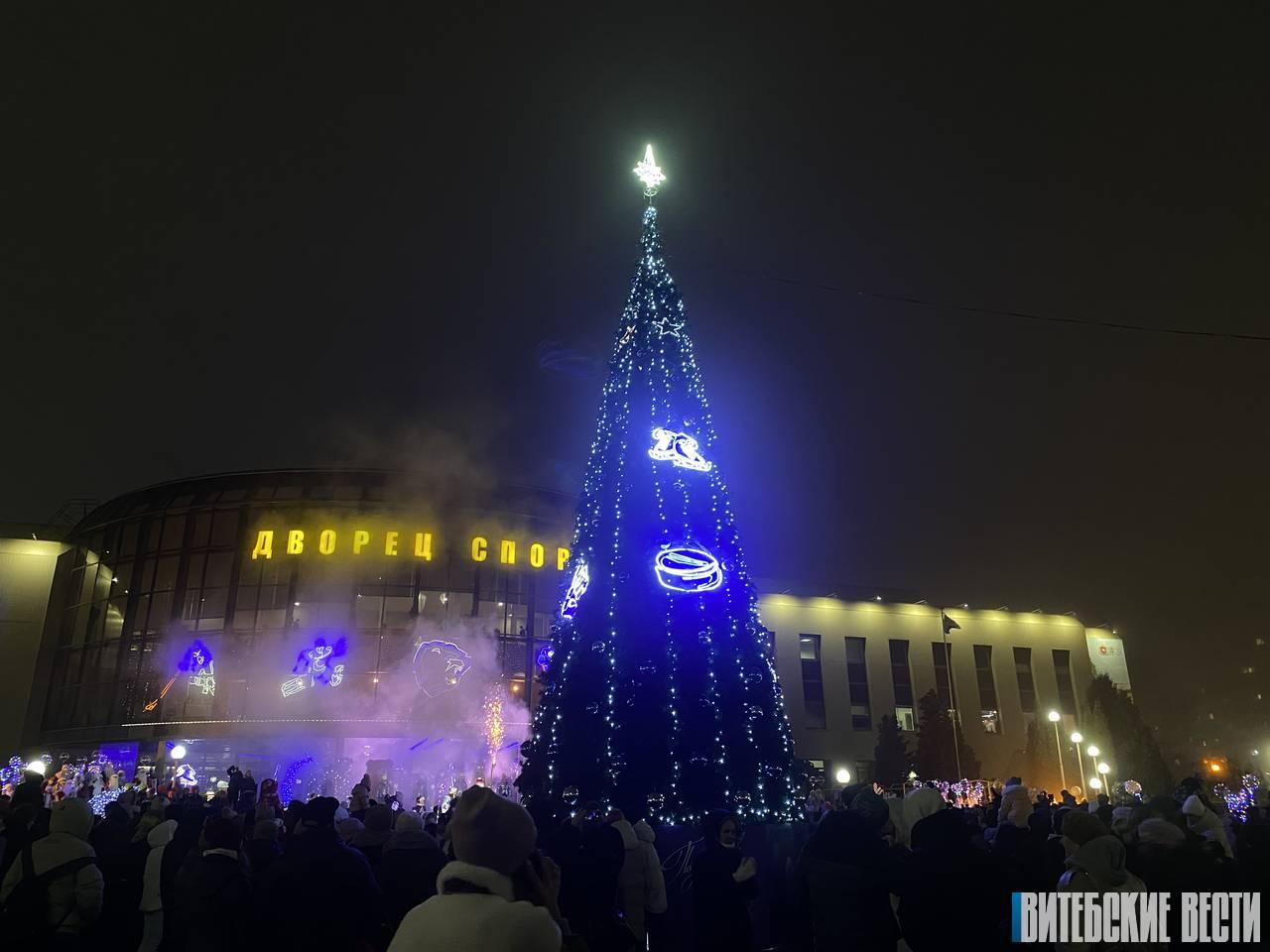 Жители города собрались на площади у Дворца спорта, чтобы увидеть, как загорается яркими огнями зеленая красавица, и зарядиться новогодним настроением.