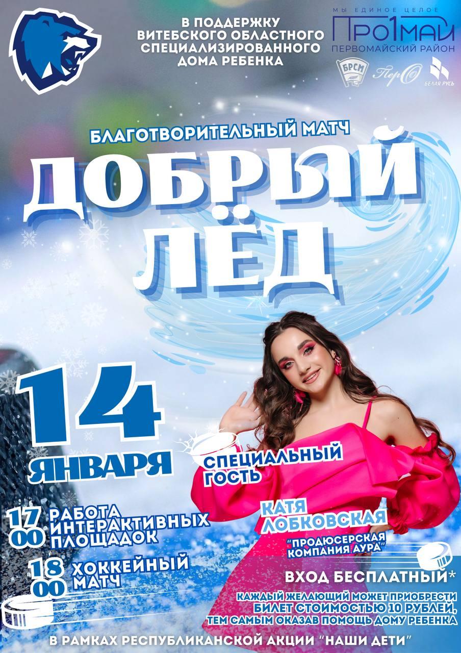 Традиционный седьмой благотворительный хоккейный матч "Добрый лед" состоится в Ледовом дворце 14 января. Денежные средства, вырученные от продажи билетов, будут направлены в Витебский областной специализированный дом ребенка.