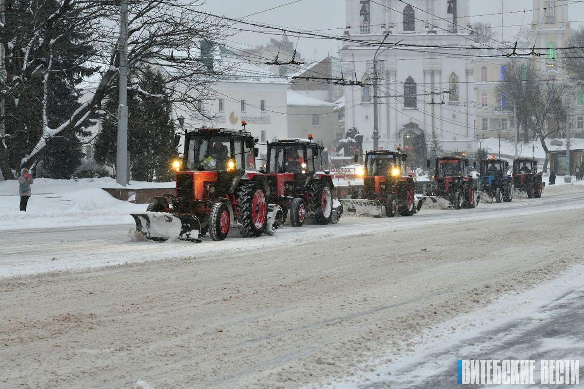 На Витебщине борьба со снежной стихией велась круглосуточно. По словам начальника главного управления ЖКХ облисполкома Юрия Дядёло, ежедневно около 300 единиц техники неустанно патрулировали основные дороги и улицы области, очищая проезжую часть и тротуары для обеспечения проезда общественного транспорта, экстренных служб и автолюбителей, а также для комфорта пешеходов. Борьбу со снежными заносами вели почти 1000 человек.