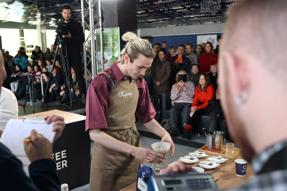 На самом чемпионате Дмитрий Демешин принял участие в дегустации кофе, а после – в мастер-классе от чемпиона мира по приготовлению напитка в турке Сергея Блинникова.